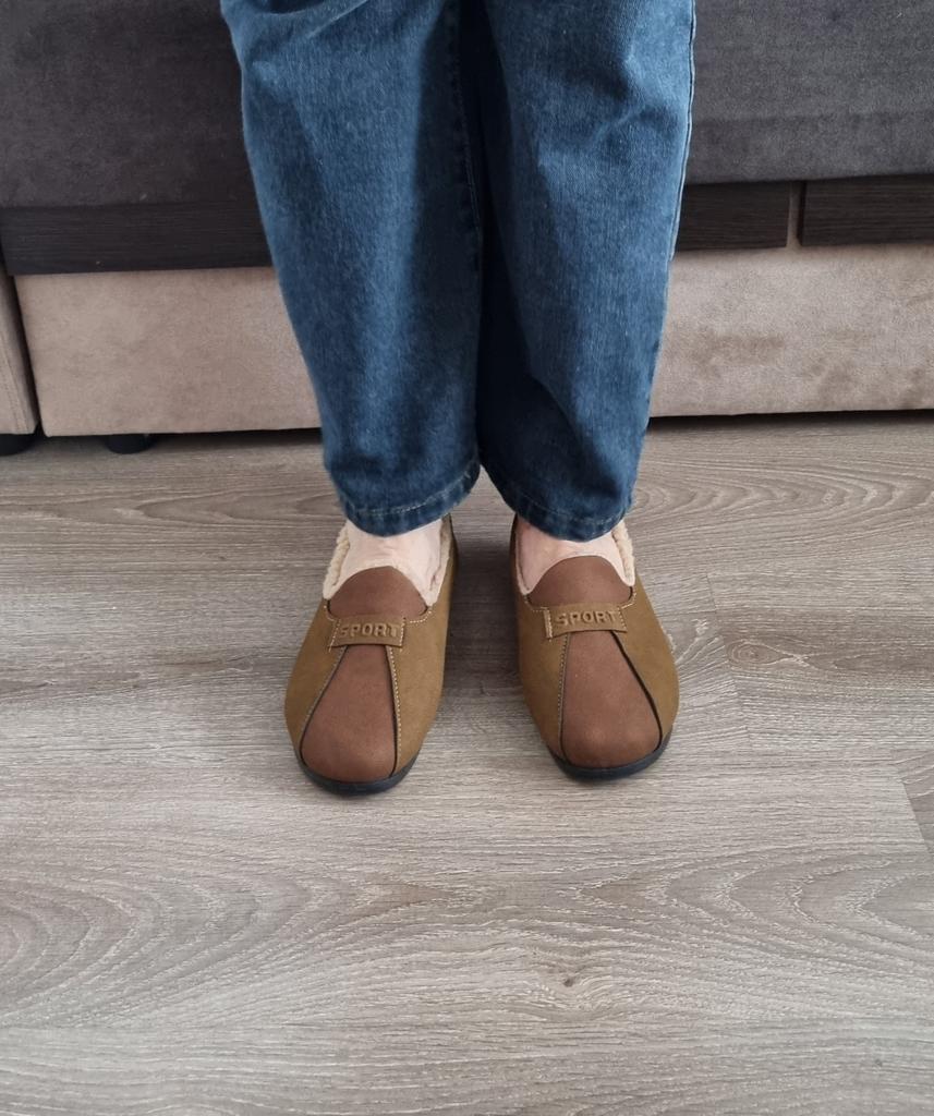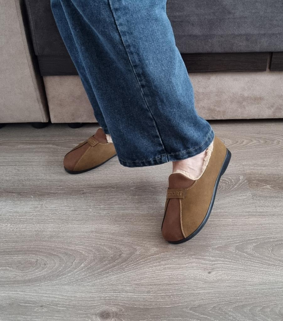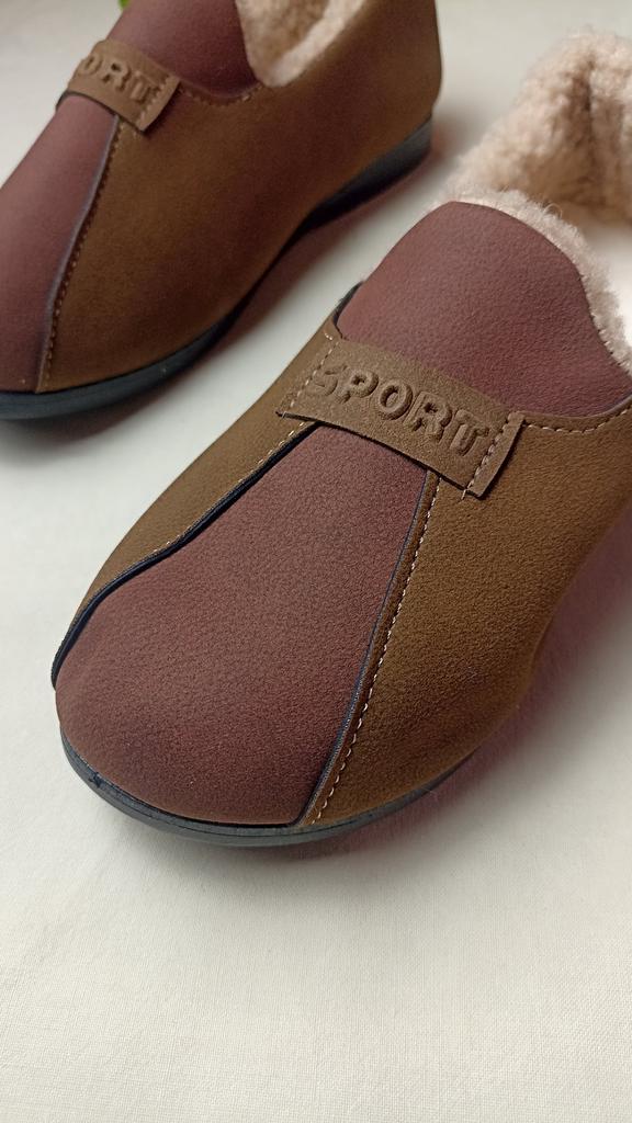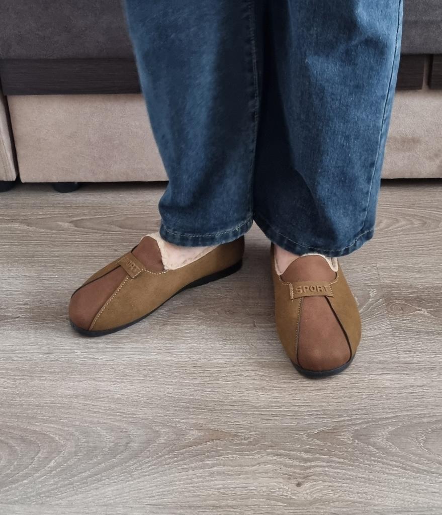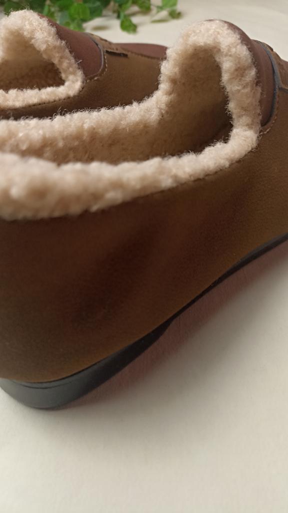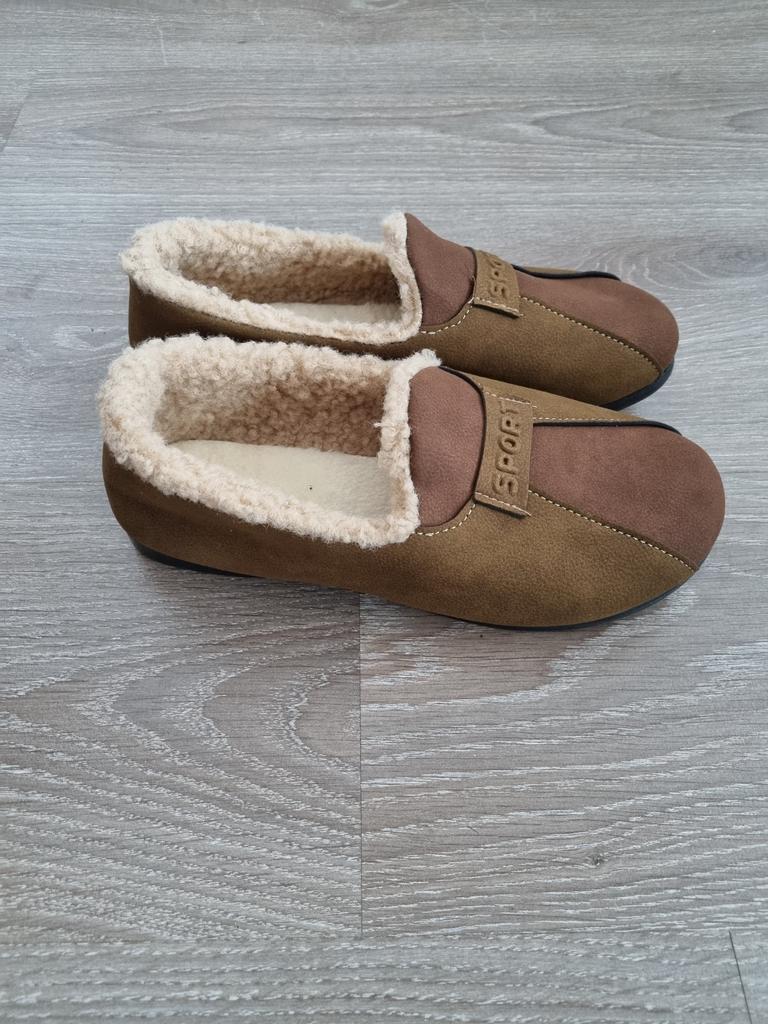 Women's moccasins or slippers with fur lining. They have an upper made of artificial suede and a soft lining of artificial fur/sheepskin, which makes them warm and comfortable to wear at home or in cold weather. Sole rubberized and non-slip. Three colors to choose from. Size 41 for a 25 cm foot. I recommend.👍