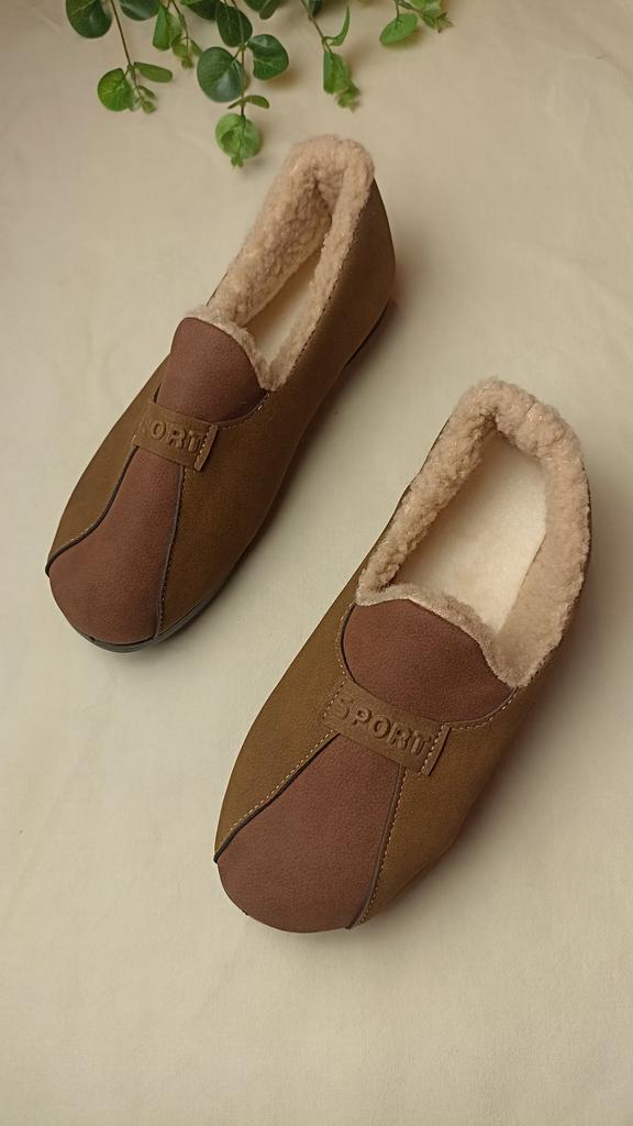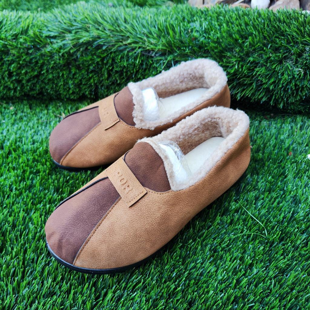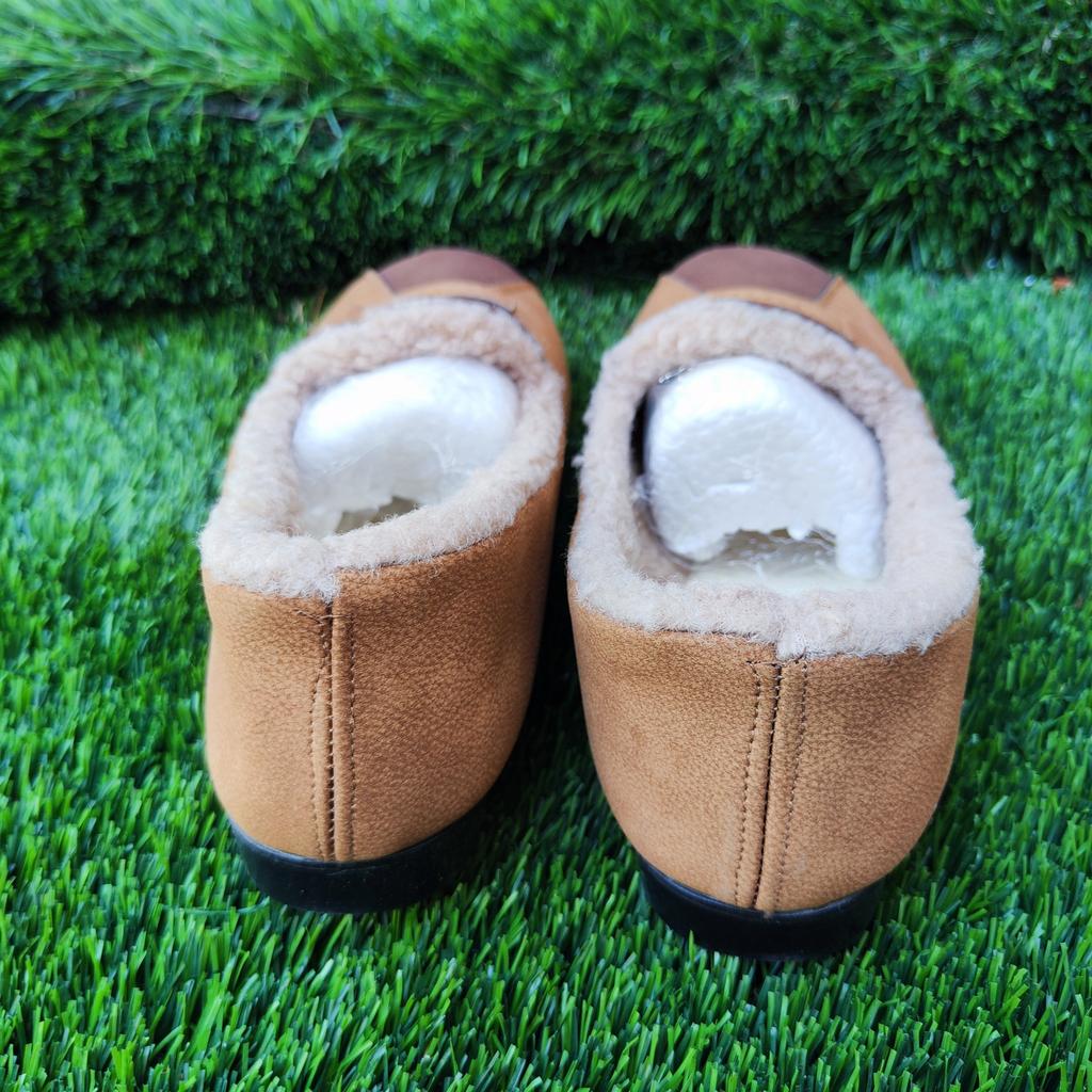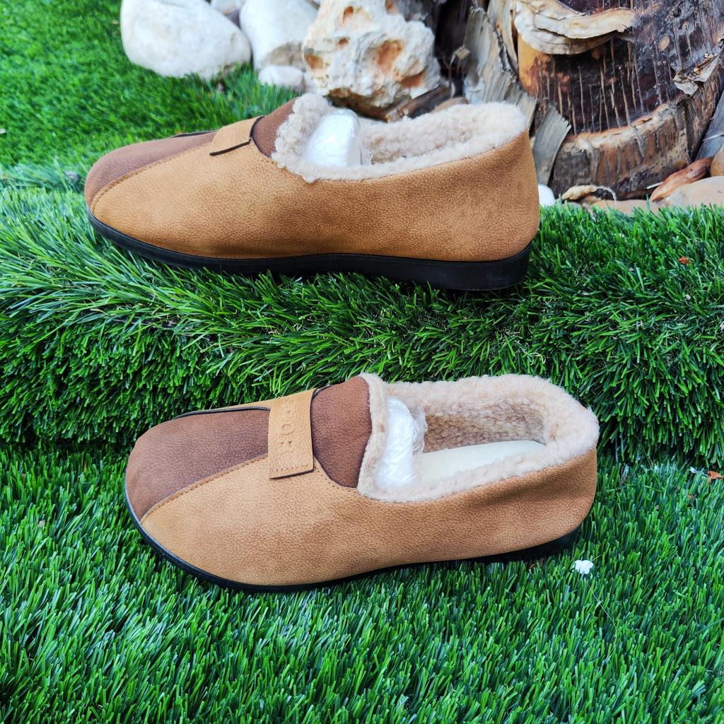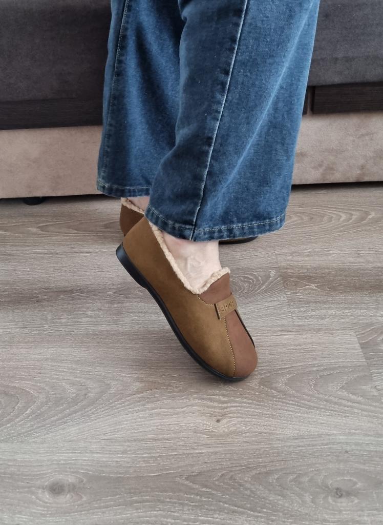 Women's moccasins or slippers with fur lining. They have an upper made of artificial suede and a soft lining of artificial fur/sheepskin, which makes them warm and comfortable to wear at home or in cold weather. Sole rubberized and non-slip. Three colors to choose from. Size 41 for a 25 cm foot. I recommend.👍