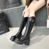 Raised bottom square head thick heel high boots women's 2025 autumn and winter new glossy thick-soled waterproof table elastic thin boots