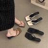 Pinch feet black gold flip-flops women's shoes summer wear 2025 new temperament ins sandals high heels sandals