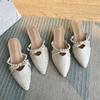 Single shoes medium heel spring 2025 British new shallow mouth pointed head side empty fairy evening evening wind shoes thick heel female flat