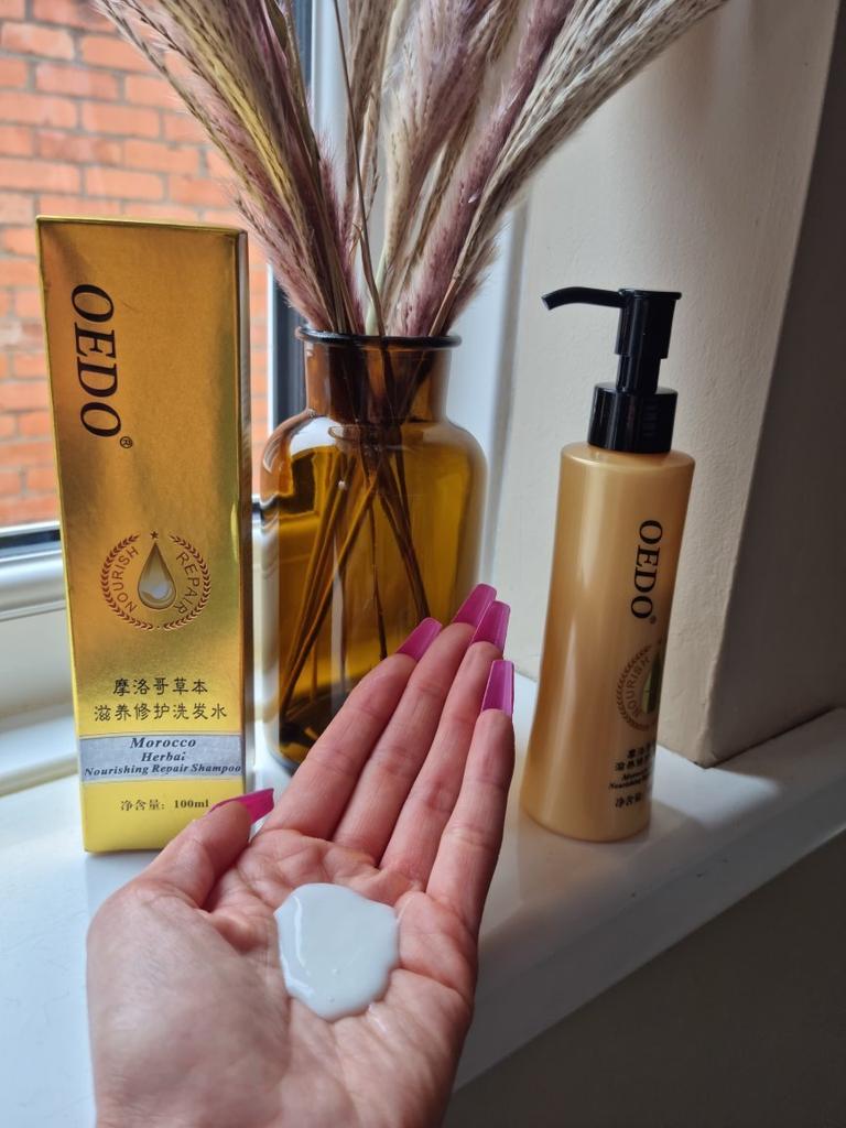 Beauty Review 😍 Morocco herbal shampoo by OEDO 💛 Promocode KZZ30E67FT Delivery only took a couple of weeks to the uk 🇬🇧 The bottle came in a cellophane wrapped gold box which looks really expensive 😀🥰 The bottle is 100ml size and has a pump top. So press the pump down to release some shampoo 😀 I have yet ti find a great shampoo which repairs and leaves hair smelling and feeling amazing until now. The smell reminds me of getting hair washed at a hair dressers. It smells totally amazing 😲 The texture of the shampoo is thick and you only need a small amount in your hand. The shampoo inside the bottle is white The product is designed to nourish, repair damaged hair, improve dry and fragile hair ✨️ it certainly ticks all the boxes for me as my hair feels fantastic 😀 Thankyou joom and joom seller ❤️