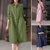 Women's Fashion Literary Standing Collar Loose Casual Solid Color Dresses