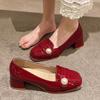 Zapatos De Mujer Women Cute Round Toe Wine Red High Quality Office Square Heel Shoes Lady Casual Black Sexy Party Heels