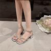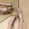 Su Yinyin Rock Candy Fairy~ Summer New One-word Sandals French Rhinestone Open-toed Thick High-Heeled Sandals Women