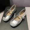 Silver single shoes women's summer new rhinestone retro shallow mouth flat bottom inner height increase Mary Jane small leather shoes