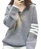 This loose-fitting hoodie is perfect for autumn and winter. Its moderate length, covering the buttocks, makes it comfortable and relaxed to wear. The elegant curved hem gives it a modern look. This loose-fitting sweatshirt is an item that is highly effective at flattering the figure. It flatters the figure while creating a slimming look. The unique design of the sleeves is the highlight, and by combining the bubble sleeves with a pure color and striped patchwork design, you can easily create a sophisticated and unique look.