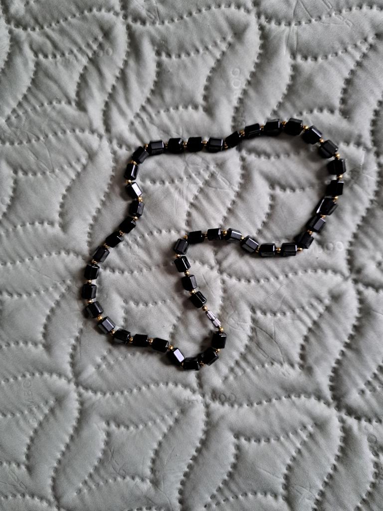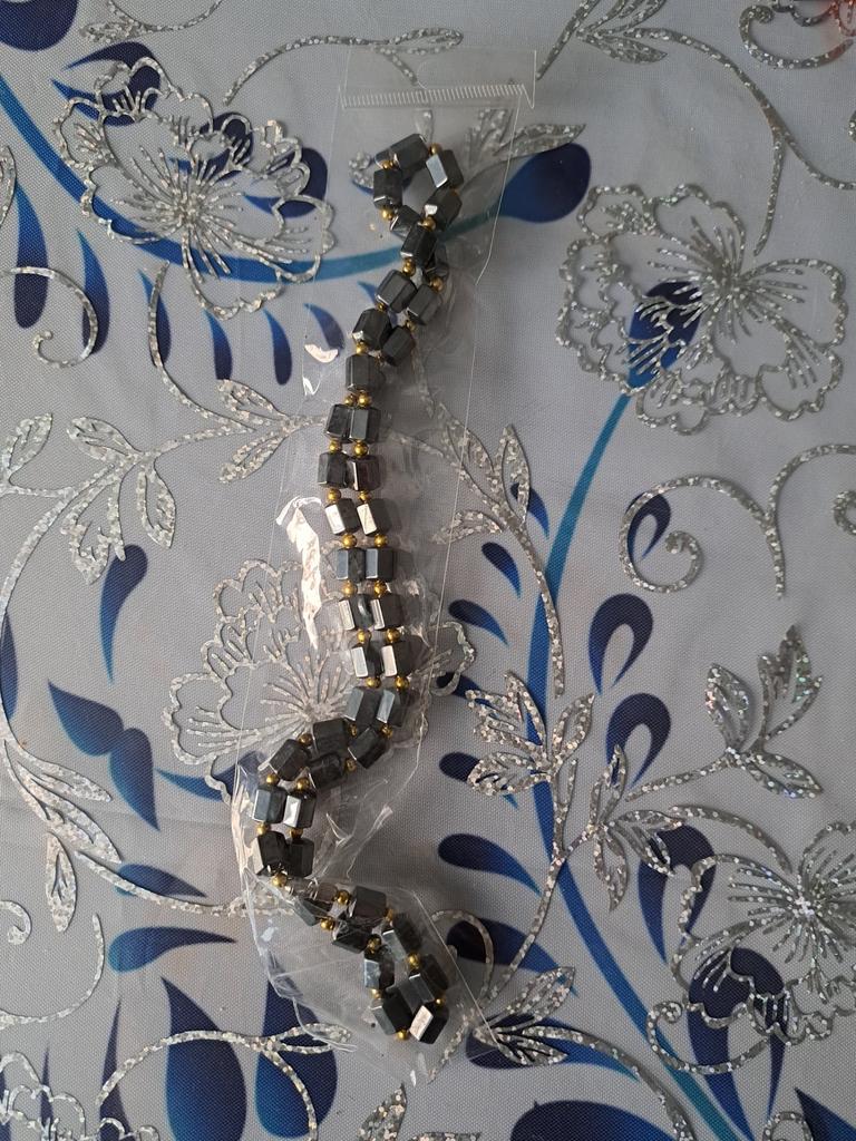 Halskjedet er vakkert, steinen er naturlig. Småsteinene er magnetiske, noe jeg ikke vil si om de kjøpte armbåndene.