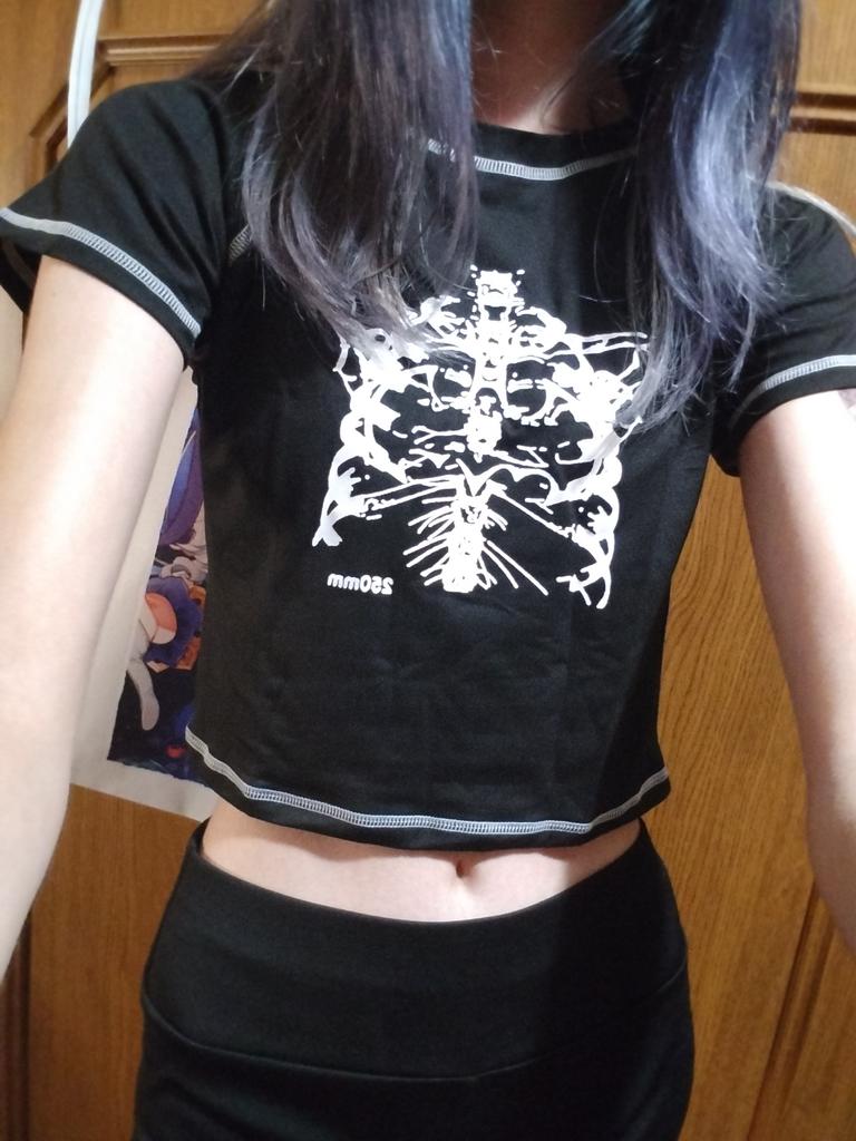 Y2K svart søt jente slim skull print morsom vintage grafisk klær crop top E-jente
