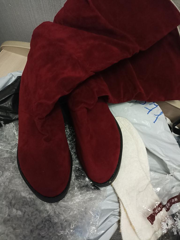 Snøstøvler Dame Vintersko Høy topp Lange Støvler Mote Dame Knehøye Støvler Svart Rød