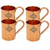 Prisha India Craft Copper Barrel Mug for Moscow Mules Cup, Hammered Design, Capacity 520 ML, Set of 4