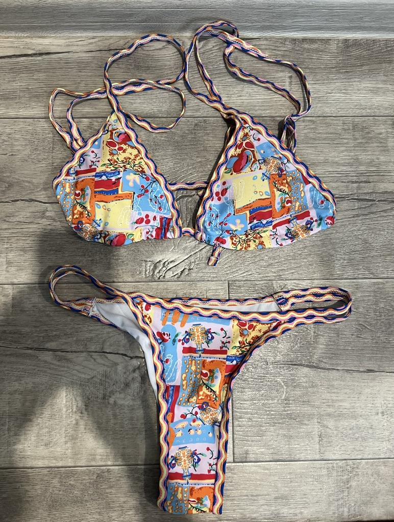Bikini❤️ 😍😍 Bikinien er virkelig vakker og sømmene er helt perfekte!!! Jeg valgte en størrelse small og den er perfekt. Jeg er en xsmall. Mine mål er 70 cm for midjen og ca 90 cm for hoftene. Ankom om 3 uker 🌈🌈🌈🌈 KONKLUSJONER Utmerket valuta for pengene💯💯💯💯