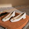 Spring Autumn Fashion Retro Square Toe Shallow Mouth Bow Mid-heel High Heel Shoes Leather Thick Commuter for Women