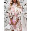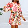 Dame Sommer Chiffon Langermet Ruffle Printed Korte kjoler