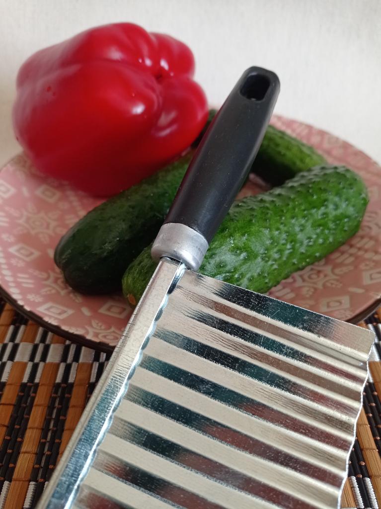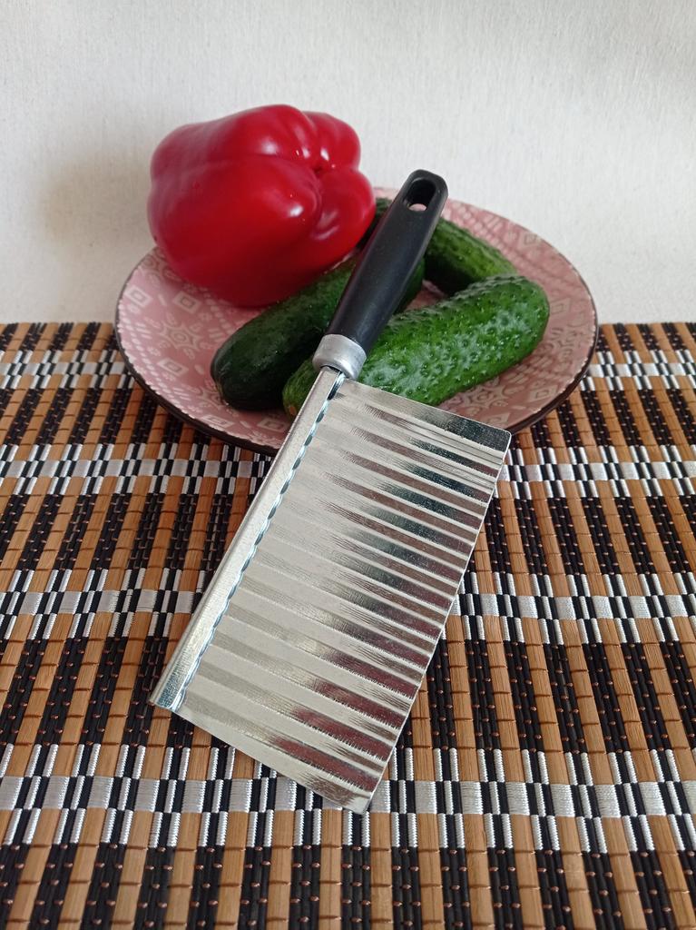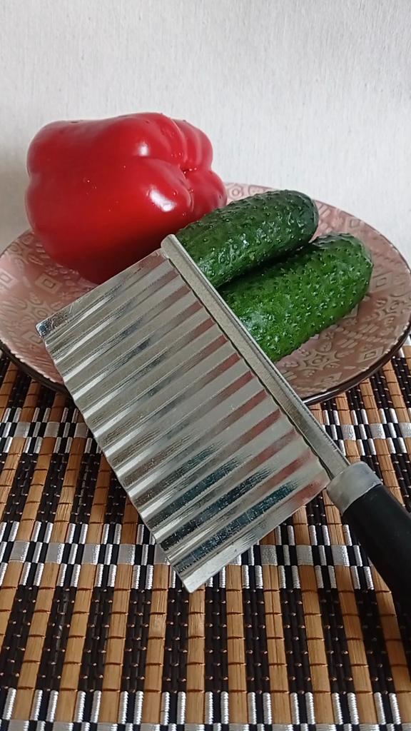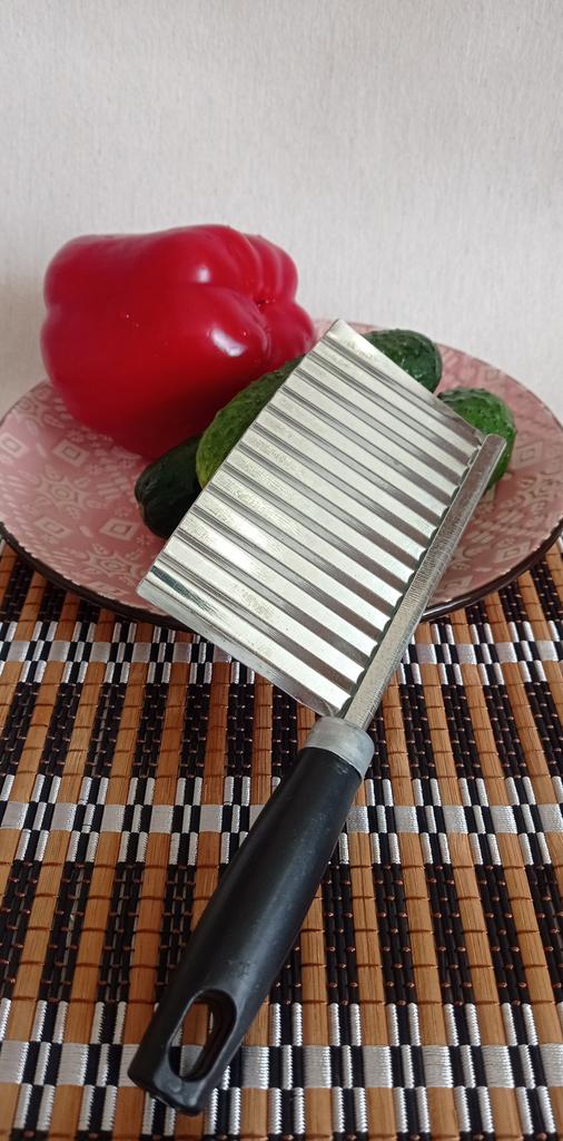 Bølget kniv (skjærer)🔪🍠 fra MYVIT-butikken. Selve kniven er laget av metall, knivskaftet er laget av plast. Vil du overraske gjestene dine med utsøkt dekorasjon av retter og original presentasjon? Da vil denne kniven hjelpe deg. Med denne kniven kan du enkelt og uanstrengt kutte grønnsaker og frukt i vakre jevne bølger. Kniven egner seg også til ost, gelé og deig. Hvis familien din elsker stekte poteter, kan du med denne kniven legge til et snev av originalitet til en vanlig rett 😉 Bra kniv, jeg likte den. Jeg legger til nok bilder + videoer for å gjøre det lettere for deg å bestemme 📸🎥 Hvis informasjonen var nyttig, sett den som en favoritt ❤️❤️❤️ Jeg mottok produktet på 24 dager i en kombinert pakke 🚚 Banen ble sporet i sin helhet. Ankomsten til utleveringsstedet ble varslet på sms 📲. Emballasje: boblepose og individuell emballasje. Produktet er fri for feil og mangler, uten fremmed lukt. God handel og rask levering til alle 🛍️☺️🚀🌼 Komfort og velvære til deg og dine familier 🏡❤️.