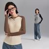 American retro raglan long-sleeved round neck color-blocked T-shirt women's autumn and winter new loose ins style versatile top