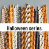 100pcs/bag Halloween Paper Straw Pumpkin Bat Spider Skull Orange Black Color Festival Paper Straws