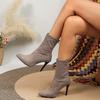 Women's high-heeled short boots autumn and winter sexy pointed thin heel large size suede elastic boots