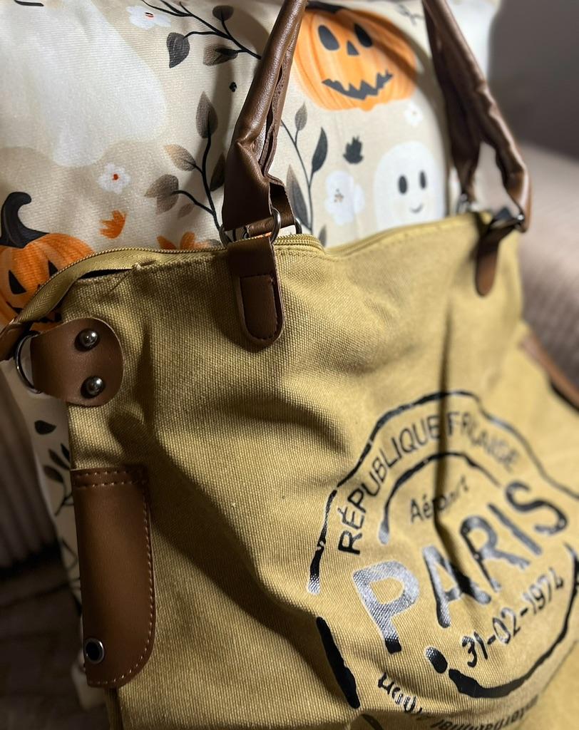 Uformell Hånd Lerretspose Dame Mote Bokstav Tote Bag Stor Kapasitet Pendler Crossbody Veske