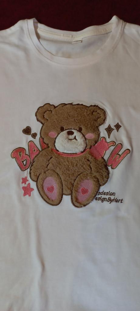 Dame Retro Bjørn Flokket Bomulls-T-skjorte, Løs Passform, Kortermet, Søt Vintage Sommeroverdel