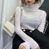 Den halvhøye halsen og de lange ermene gir et snev av sjarme med det gjennomskinnelige designet, noe som gjør det til et allsidig plagg for ulike anledninger.. Denne toppen er laget av polyesterfiber og er ikke bare hudvennlig og komfortabel, men tilbyr også en flatterende passform med sin elastisitet.. Denne dametoppen er et must-have i samlingen din, perfekt for ferier, fester, klubber eller hverdagsbruk.