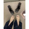 High-heeled niche slippers women's shoes summer 2025 new versatile outer wear square toe sandals