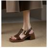 Sheepskin version retro waterproof table high-heeled sandals one-word buckle temperament small thick-heeled high-heeled shoes women