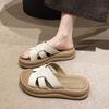 Thick-soled one-word slippers for women's summer wear 2025 new models with skirts French casual seaside beach sandals