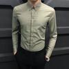 Spring and Autumn Korean Edition Polo Collar Panel Button Business Casual Slim Fit Non Ironing Men's Hidden Button Shirt