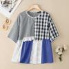 ZANZEA Women Casual Round Neck Plaid Print Loose Half Sleeve Blouse