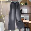 Dimanaf 2025 Plussstørrelse Høst Dame Jeans Elastiske Vide ben Bukser Denim Basic Høy midje Oversize Bukser