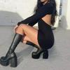 Metallspenne Chunky Platform Punk Boots Dame 2024 Vinter Gothic Tykk Bunn Kne Høye Støvler Kvinne Svarte Kiler Cosplay Sko