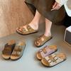 2025 new casual cool slippers summer retro cork bottom thick bottom buckle with casual Boken cool slippers women