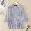 ZANZEA Women Turn Down Collar Summer Loose Casual 3/4 Sleeve Stripe Blouse