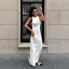 European & American Women's Summer Knitted Backless Long-Sleeve See-Through Floor-Length Dress