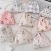 Cartoon Floral Bear Drawstring Storage Bag Women Jewelry Lipstick Makeup Bag Coin Purse Multifunctional Travel Packaging Bag