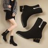 Fashion Comemore Chunky Heel Boots Women Autumn Winter Fashion Black Suede Single Short Botas Rhinestone 4cm Medium Heel Botines Mujer