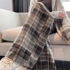 Coffee-colored woolen plaid pants women's new autumn and winter lazy wind high waist drape casual straight plush wide-leg pants