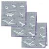 Set of 3 Gauze Dinosaur Made in Iroha Mameo Series Handkerchiefs, Design, Yellow, Gray, Blue, Japan, 100% Cotton, 35x35cm,