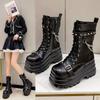 Women's Platform Boots Fashion Mid-calf Leather Boot Thick Soled Gothic Boot Punk Style Cosplay Boots for Women Motorcycle Boots