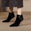 Fashion Temperament Pointed Toe Booties Women Spring and Autumn New Pointed Toe Scrub Leather Spliced Stiletto High Heel Boots