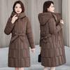 2025 winter new waist medium and long knee cotton-padded clothes fashion thin cotton clothes hooded jacket tide