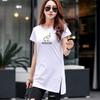 Estampa Longa Camisetas Verão Mulheres Soltas Fenda Femme Tops Algodão Camiseta Manga Curta Senhoras T-shirt