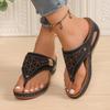 Plus Size Wedge Sandals for Women, Rhinestone Toe Platform Summer Beach Sandals