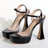 Fashion Chunky High Heeled Sandals Women Summer Buckle Strap Sandalias Platform Square Toe Crystal Super High Heels Women Pumps Shoes