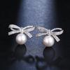 925 Sterling Silver Moissanite Diamond Earring 8mm Natural Freshwater Pearl Bowknot Simple Cute Fashion Party Girlfriend Gift